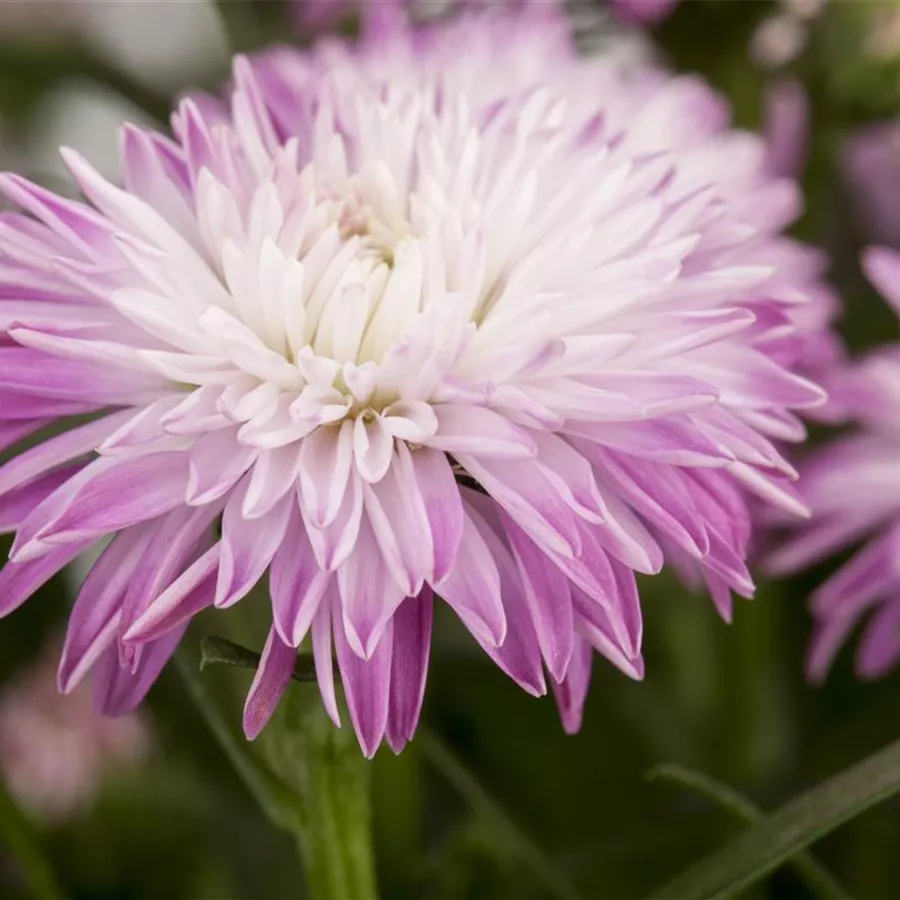Aster novi-belgii bildet körbchenartige, weiße, rosafarbene, lilafarbene, violette Blüten ab September. Diese verströmen einen angenehmen Duft.