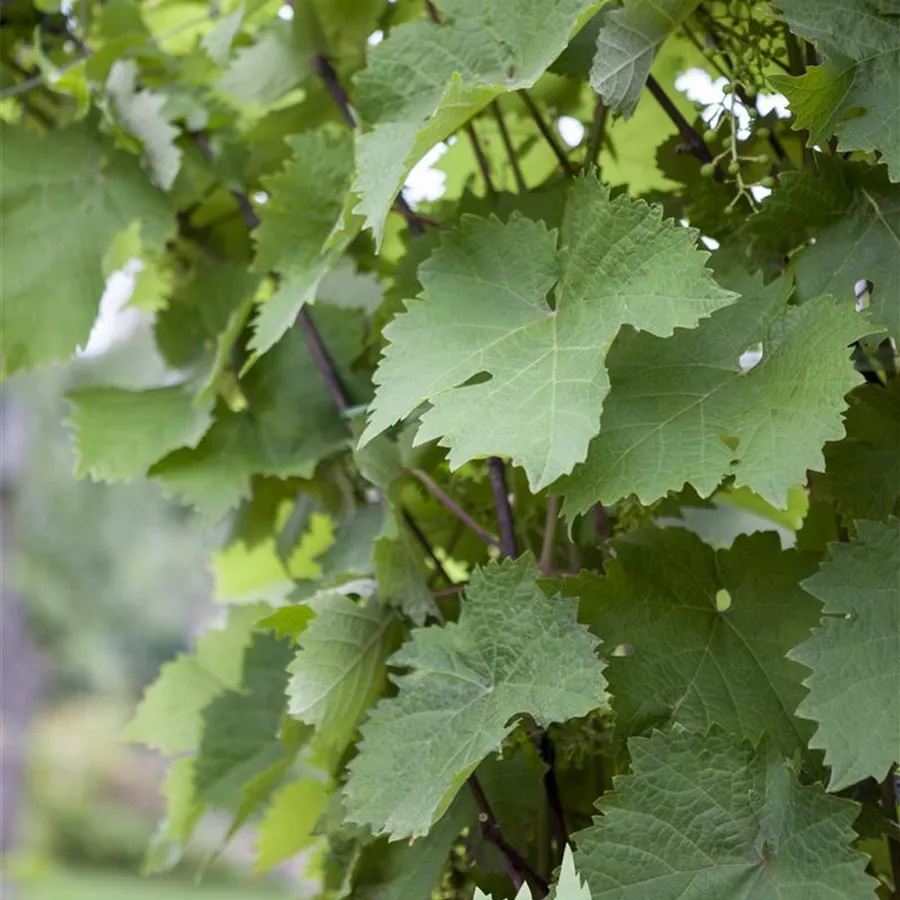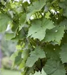 Die sommergrünen Blätter der Weintraube sind dunkelgrün, herzförmig, gezähnt. Weintraube zeigt sich leuchtend kupfergelb bis rot im Herbst.
