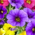 Calibrachoa 'Celebration® Karneval' bildet während der gesamten Saison zahlreiche trichterförmige, gelbe, violette, pinke Blüten.