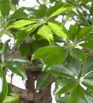 Hoher Blattschmuckwert. Die Blätter der Kleine Strahlenaralie 'Gold Capella' sind gelb-grün, handförmig, eiförmig.