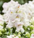 Antirrhinum majus, weiß bildet während der gesamten Saison zahlreiche lippenförmige, weiße Blüten.