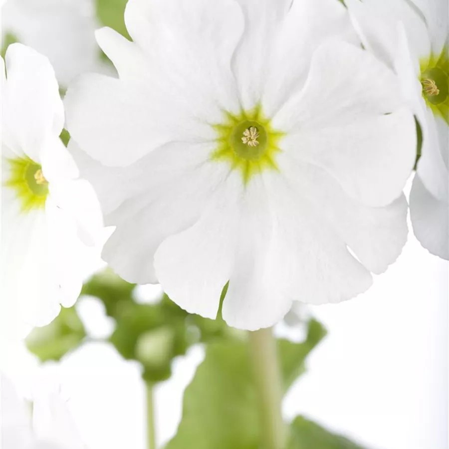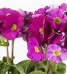 Primula obconica 'Touch Me'® bildet schalenförmige, rote, violette, weiße Blüten ab März.