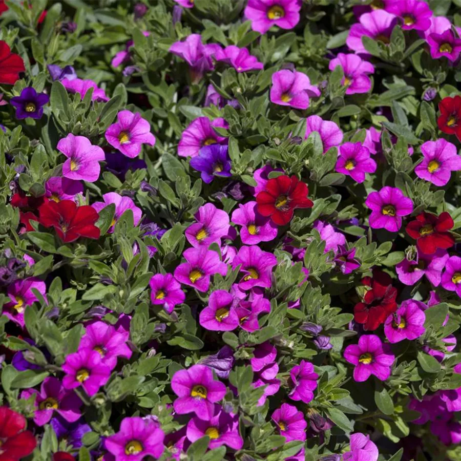 Calibrachoa 'Trixi'® bildet während der gesamten Saison zahlreiche trichterförmige, bunte Blüten.