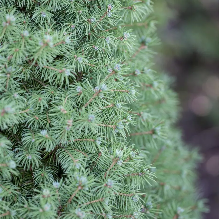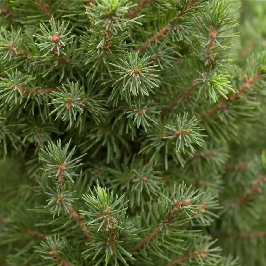 Die Zuckerhut-Fichte 'Conica' ist immergrün. Ihre Nadeln sind hellgrün, weich.