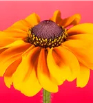 Rudbeckia hirta bildet radförmige, in Trauben angeordnete, orangegelbe Blüten ab Mai.