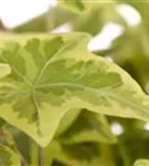 Hoher Blattschmuckwert. Die immergrünen Blätter des Gemeinen Efeus sind gelb-grün, herzförmig, ledrig, wechselständig, gelappt. Diese sind etwa 5 - 12 cm groß.