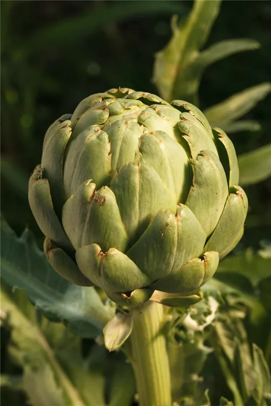 Die wintergrünen Blätter der Gemüse-Artischocke sind grau-grün, gefiedert.
