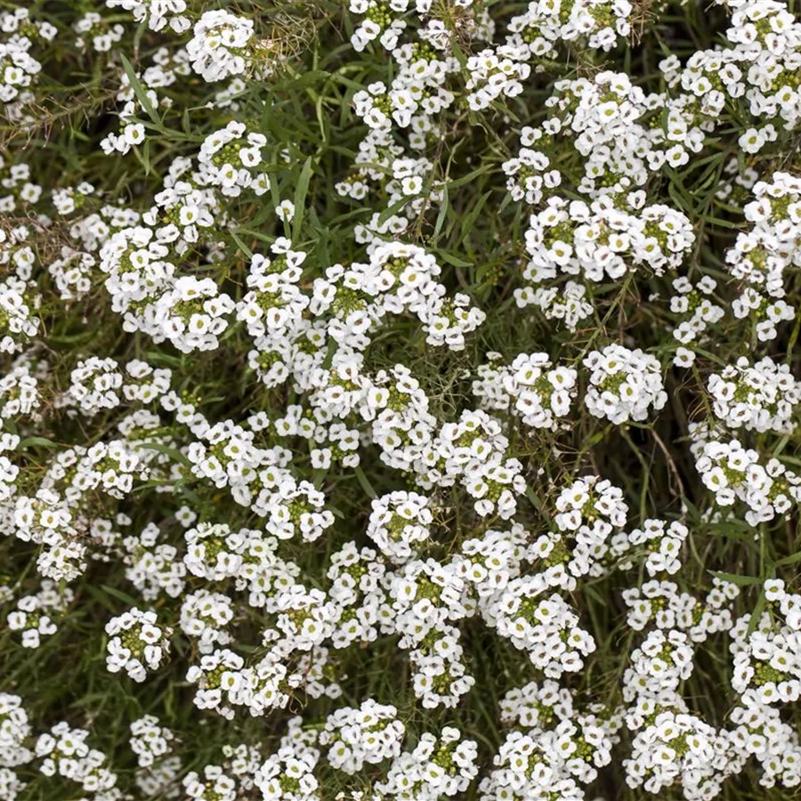 Lobularia maritima bildet während der gesamten Saison zahlreiche weiße Blüten. Diese verströmen einen angenehmen Duft.