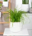 Die immergrünen Blätter des Katzengrases sind mittelgrün, lanzettlich.