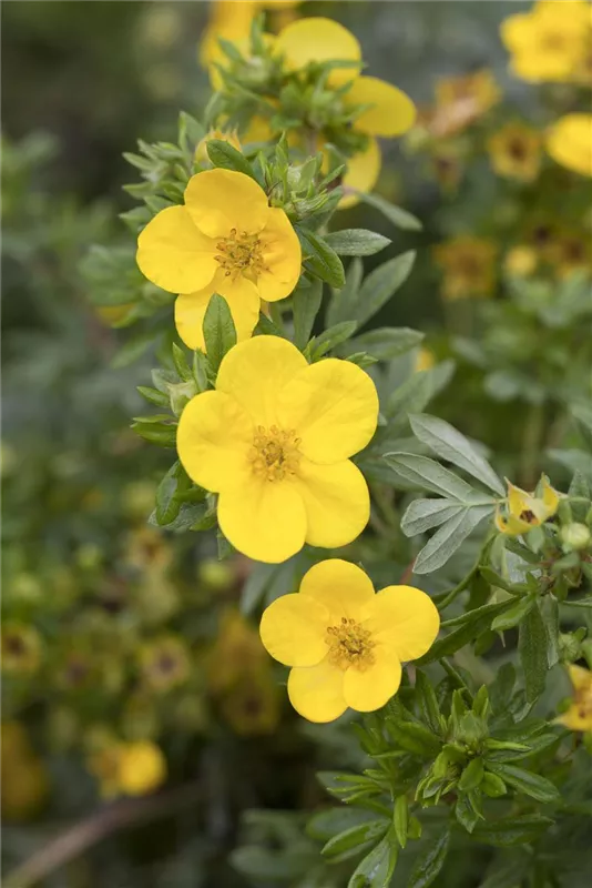 Potentilla fruticosa 'Kobold' ist ein Flachwurzler und bildet, je nach Boden, fein verzweigte Wurzeln.