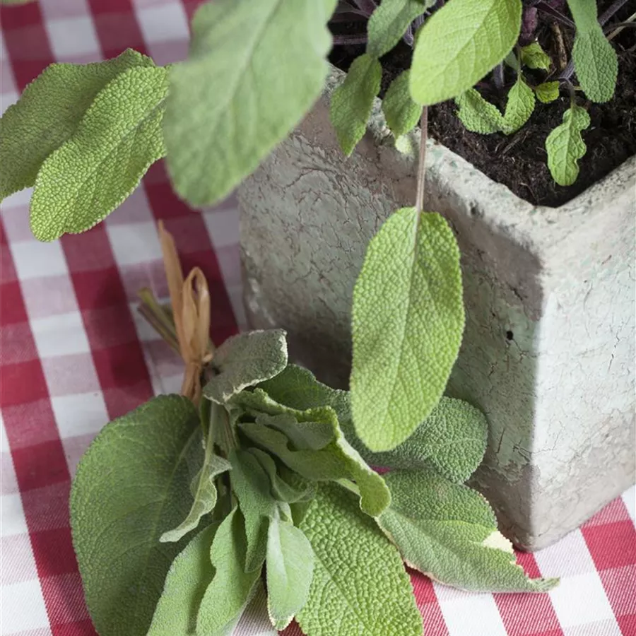 Zum Verzehr geeignet. Hoher Blattschmuckwert. Die grau-grünen, behaarten Blätter sind lanzettlich und überzeugen mit aromatischem, erfrischendem Geschmack.