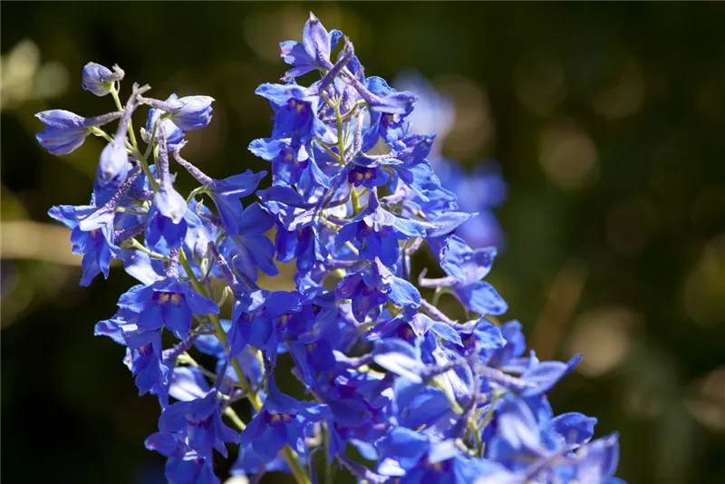 Delphinium x cultorum bildet trichterförmige, violette, blaue, weiße Blüten ab Juni. Bei richtiger Pflege Nachblüte von September bis Oktober.