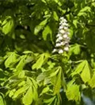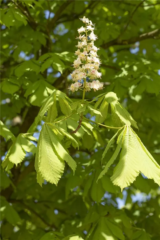 Die weißen Blüten der Rosskastanie erscheinen in Rispen im Mai.