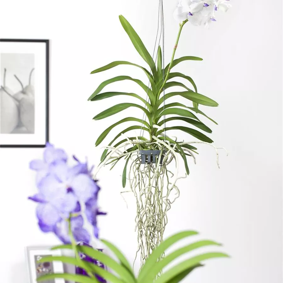Vanda bringt dekorative mehrfarbige Blüten hervor.