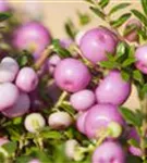 Besonders dekorativ sind die rosaroten, runden Beeren von Gaultheria mucronata. Diese erscheinen ab September.
