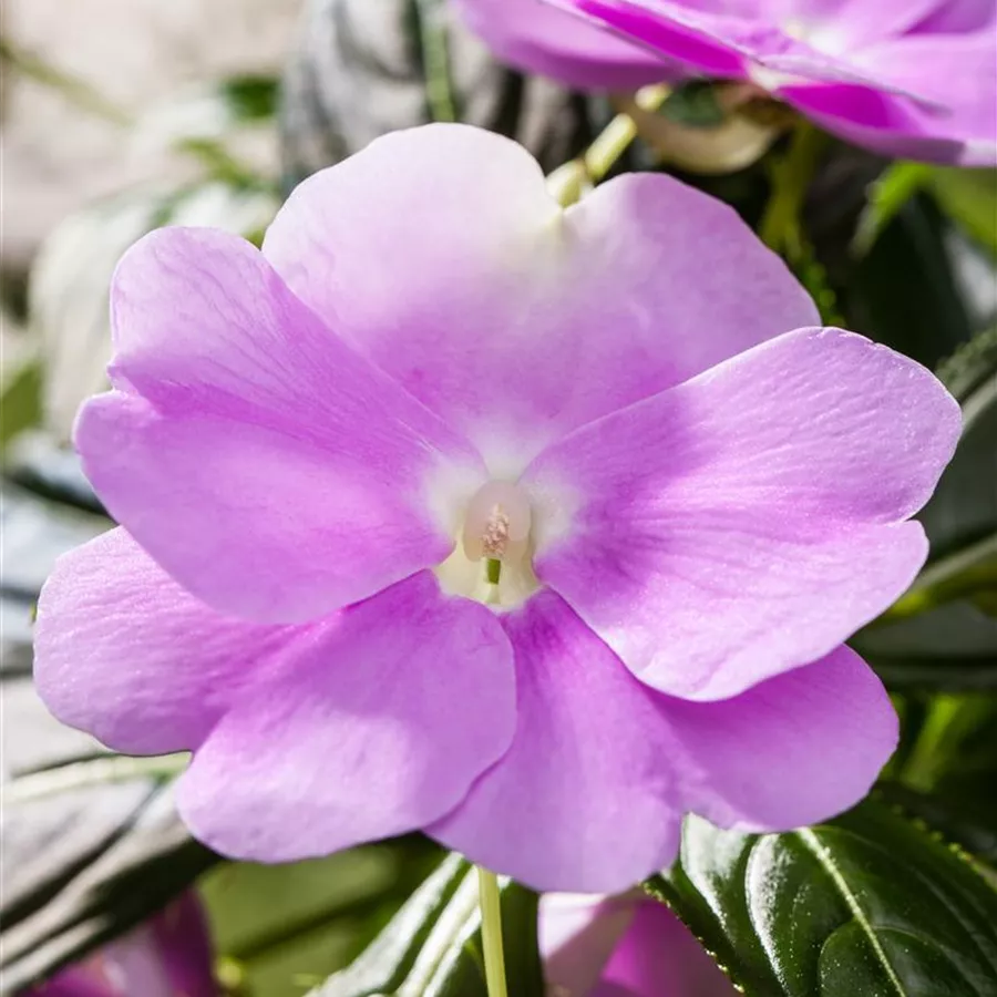Impatiens neuguinea bildet während der gesamten Saison zahlreiche weiße, rosafarbene, rote Blüten.