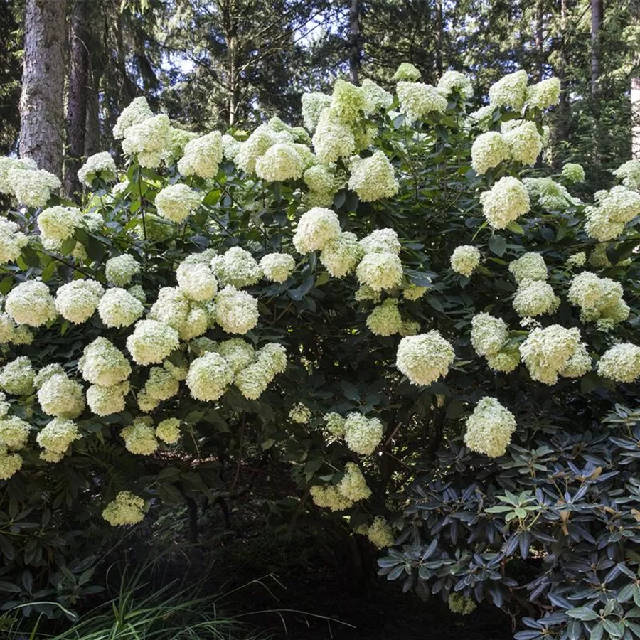 Die weißen Blüten der Rispenhortensie erscheinen in Rispen von Juli bis September. Diese sind angenehm duftend.